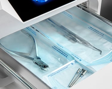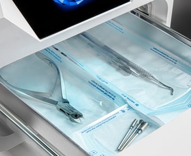 Afin de garantir des normes d'hygiène et de sécurité optimales, nous avons intégré un processus de stérilisation à la pointe de la technologie que nous utilisons dans nos interventions.